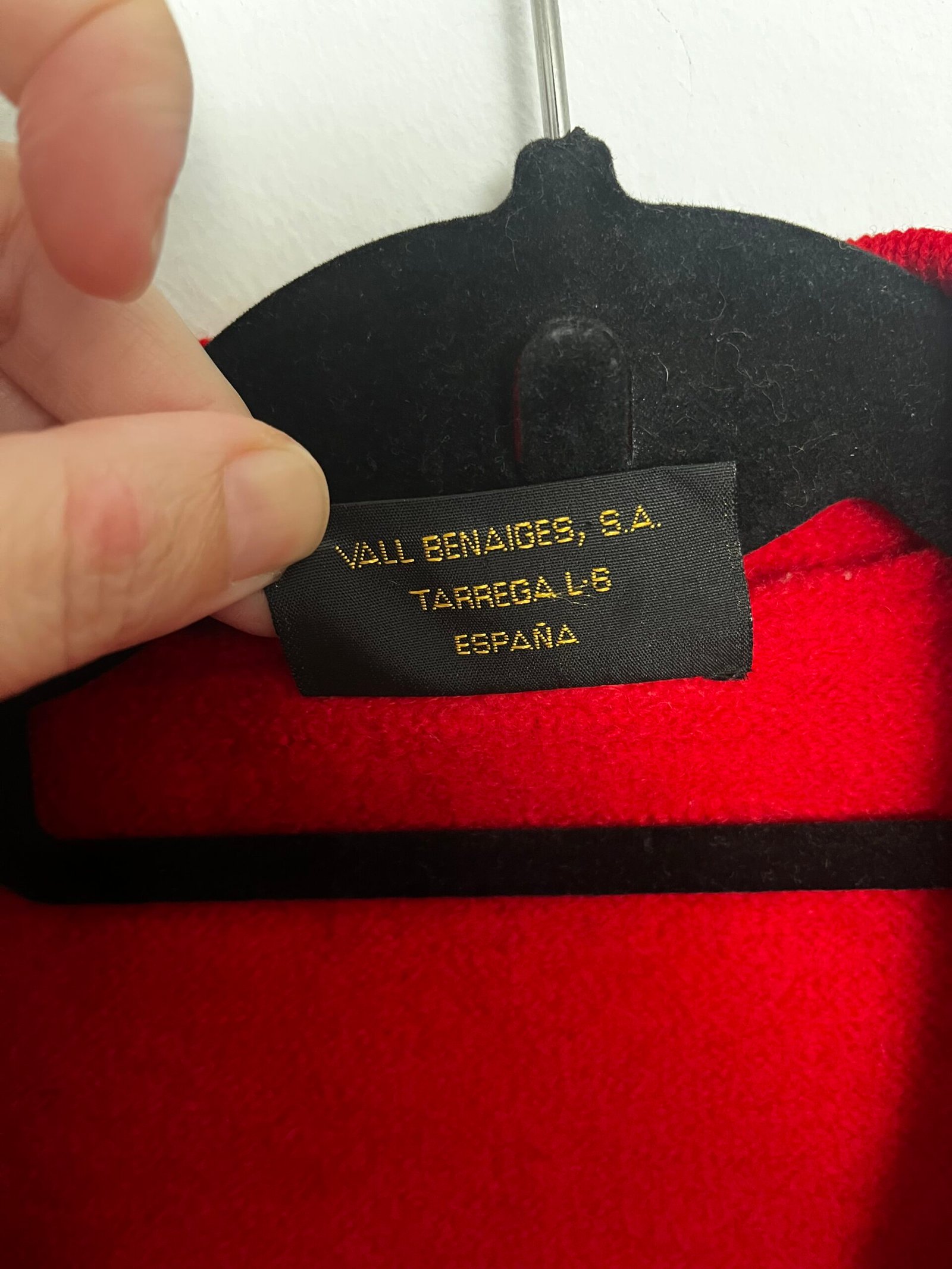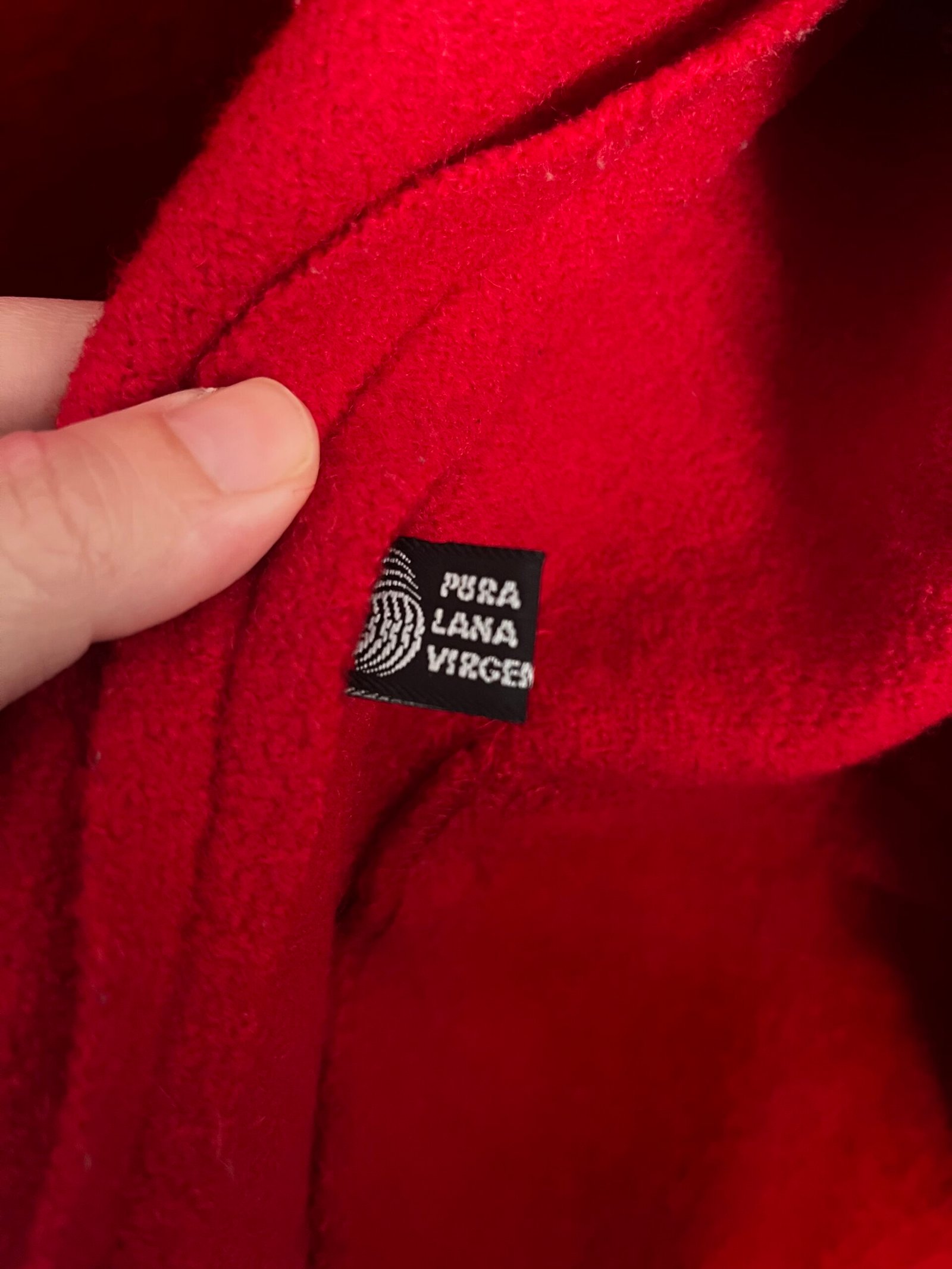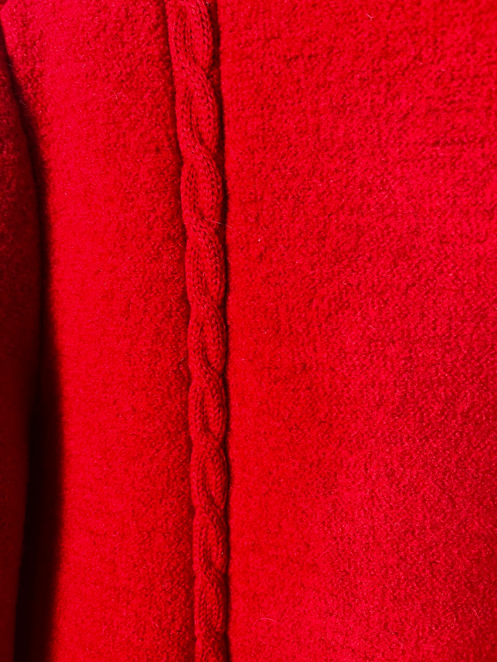 Autriaca de lana virgen roja, pero es hecha en España. Con trenzas delanteras.