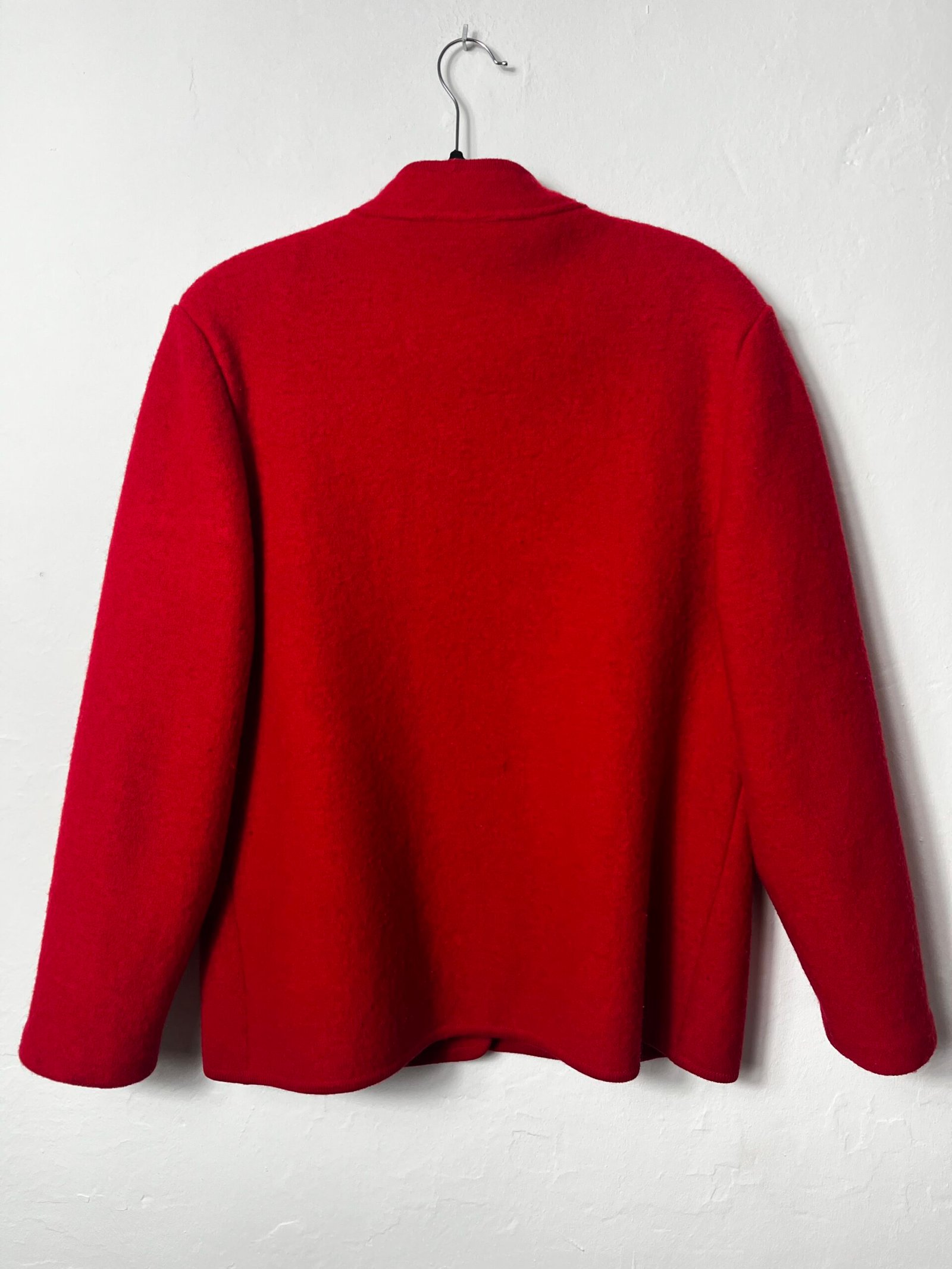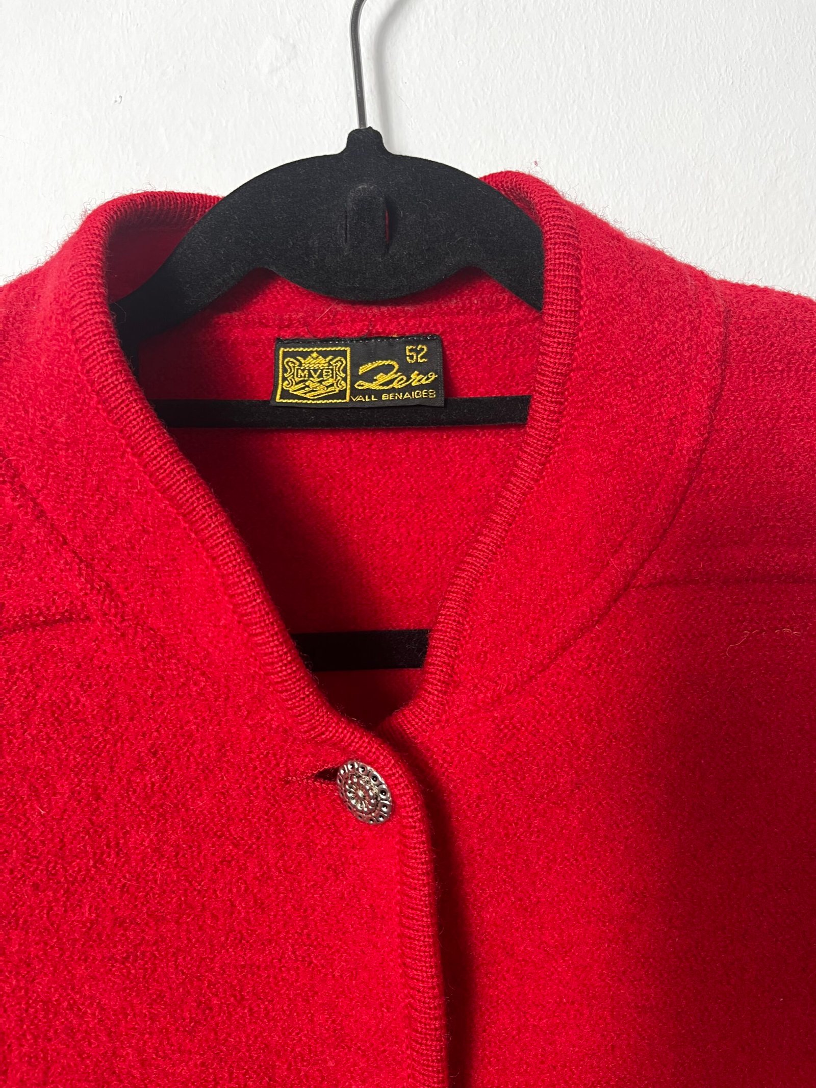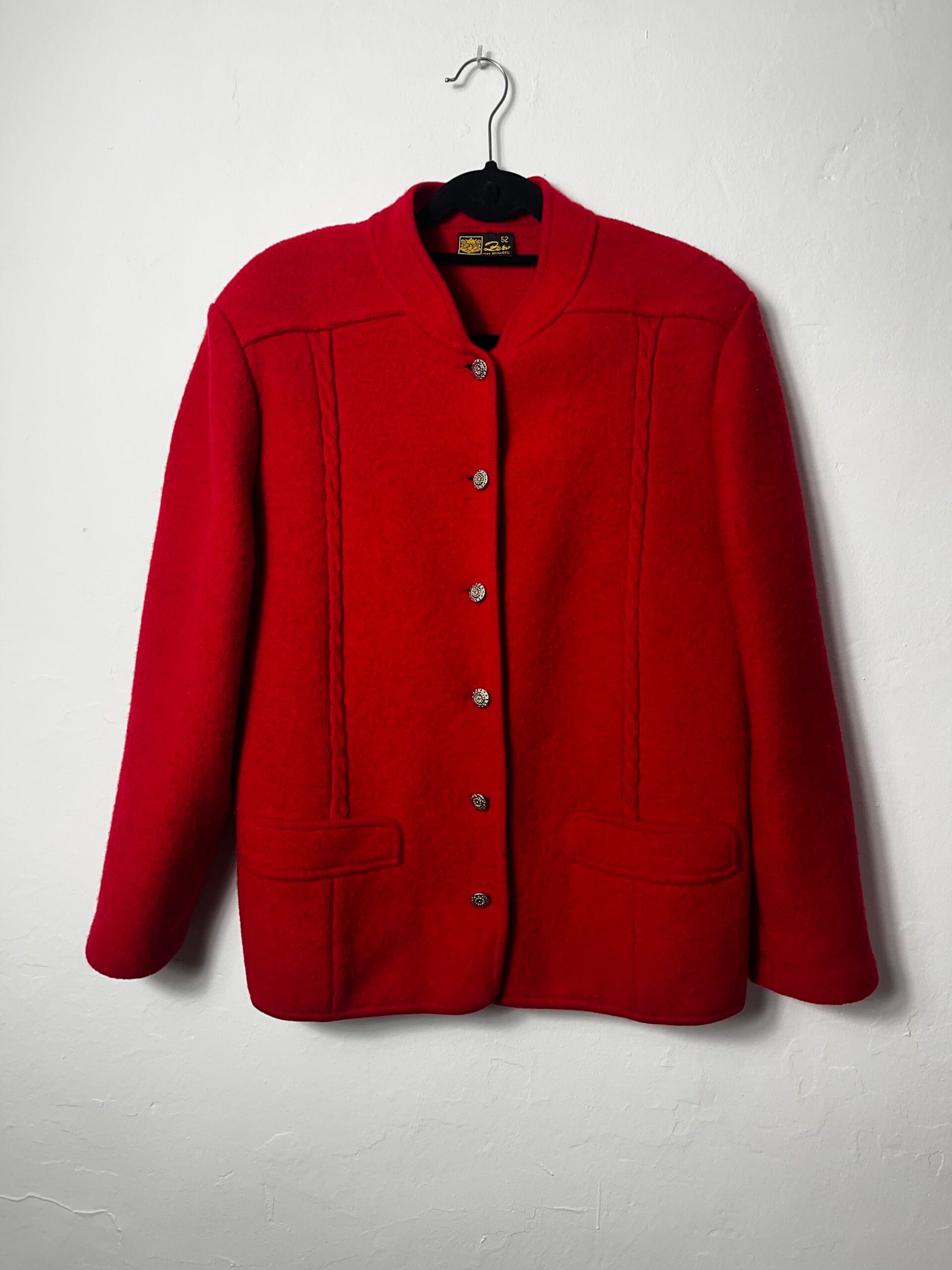 Autriaca de lana virgen roja, pero es hecha en España. Con trenzas delanteras.