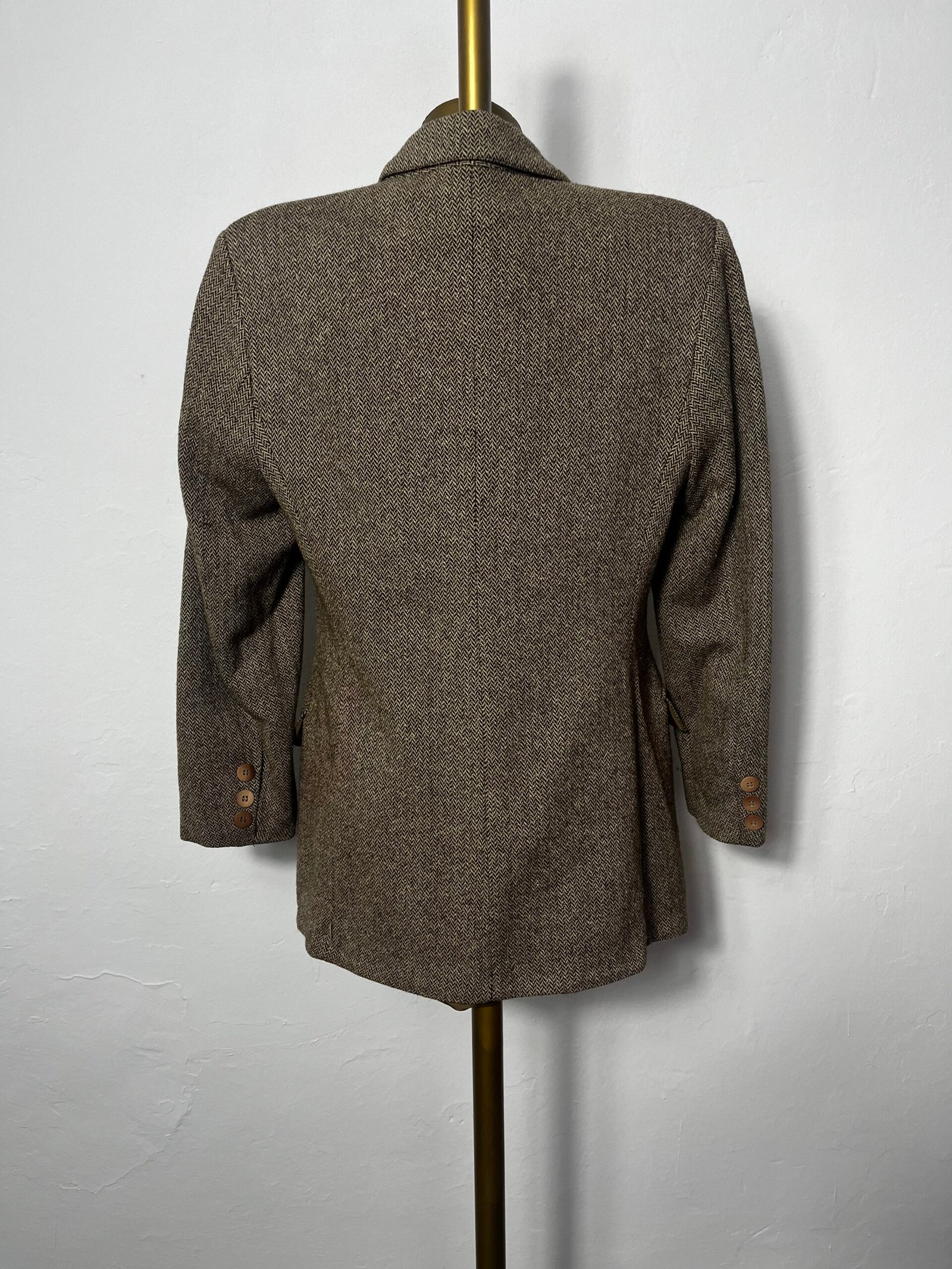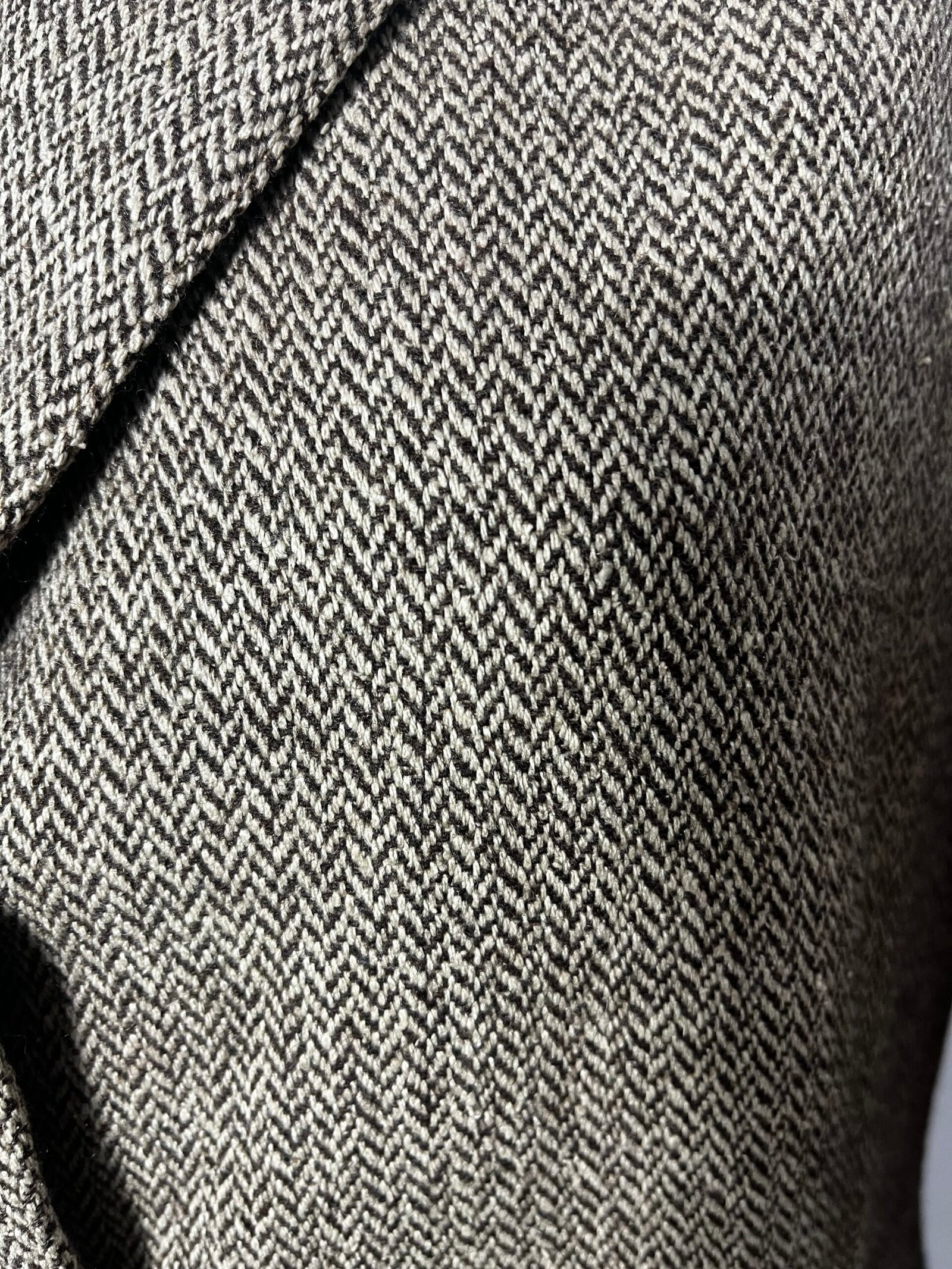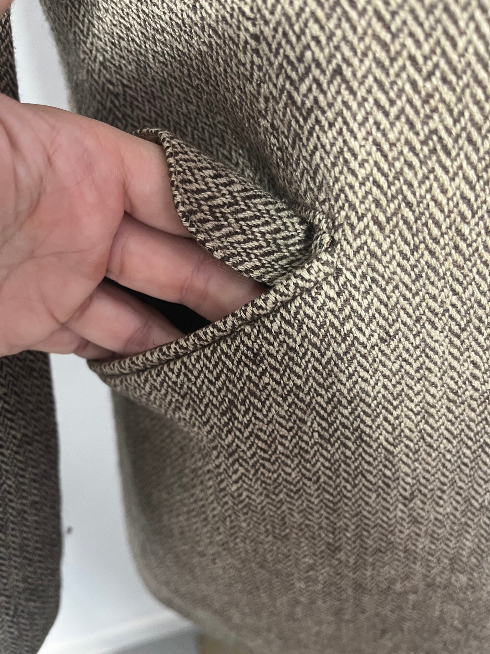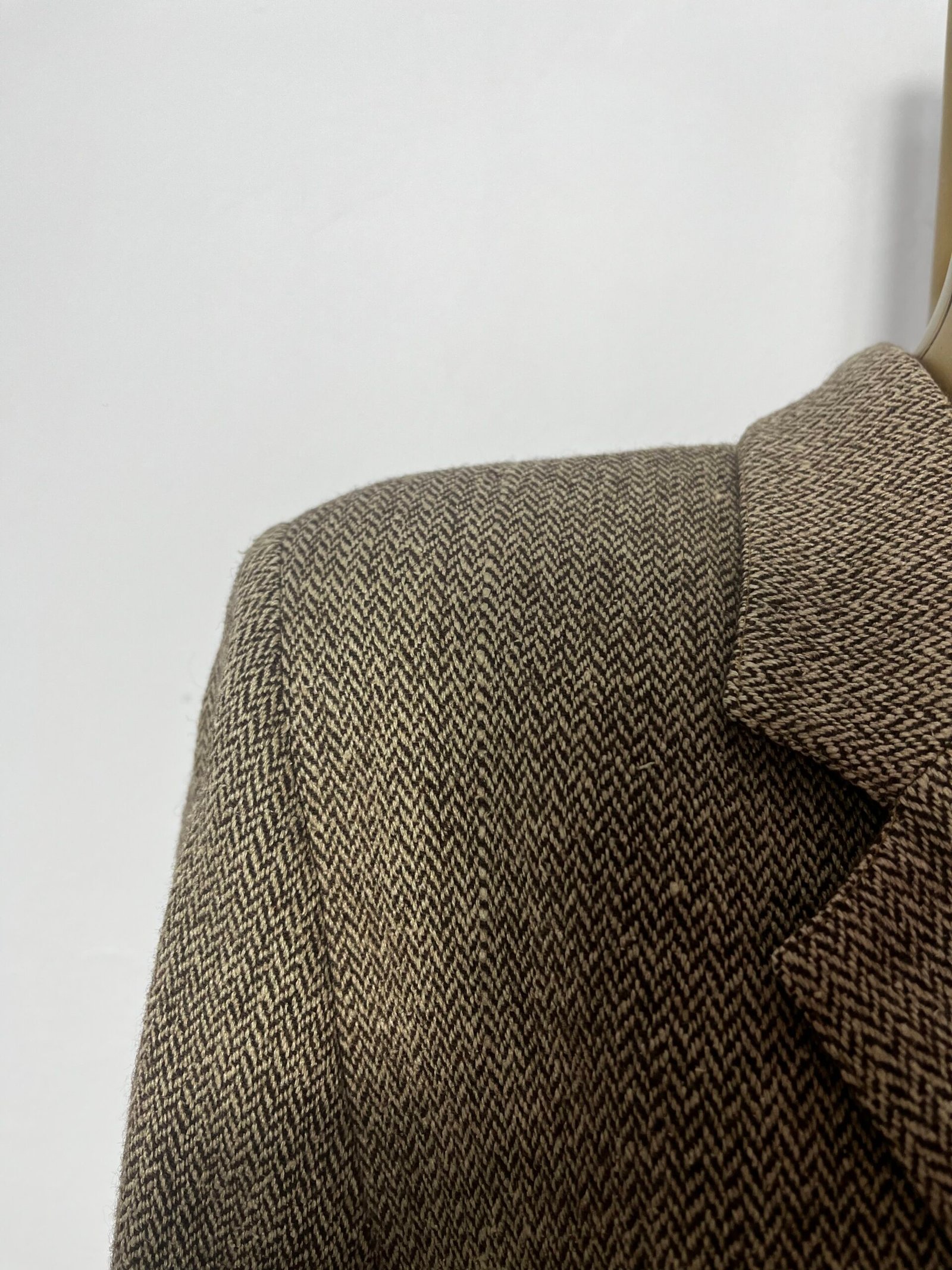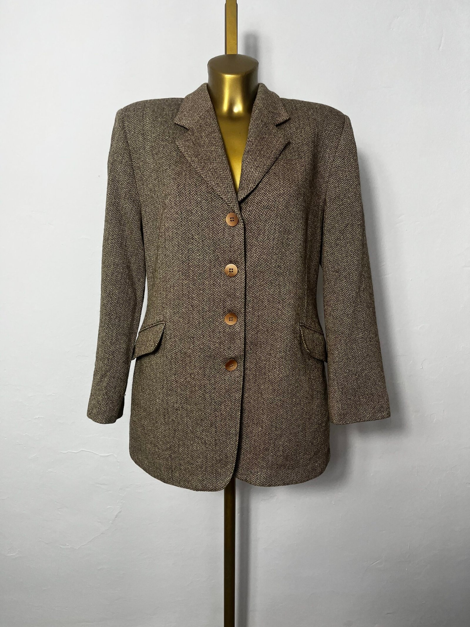 Chaqueta de mujer, entallada con cuatro botones (y fila de tres en puños) con tejido de espigas en tono caqui/beige