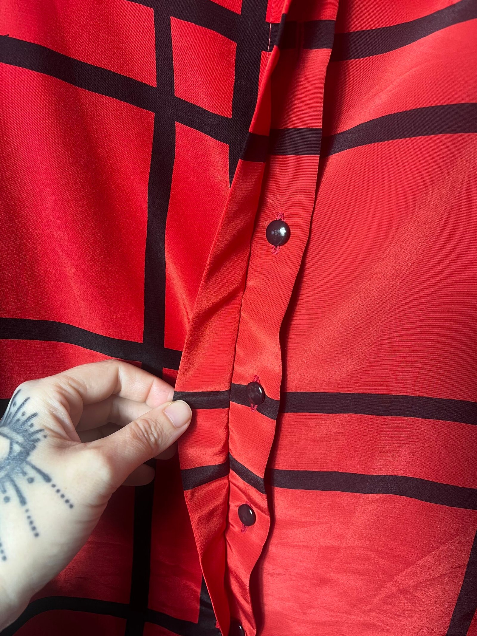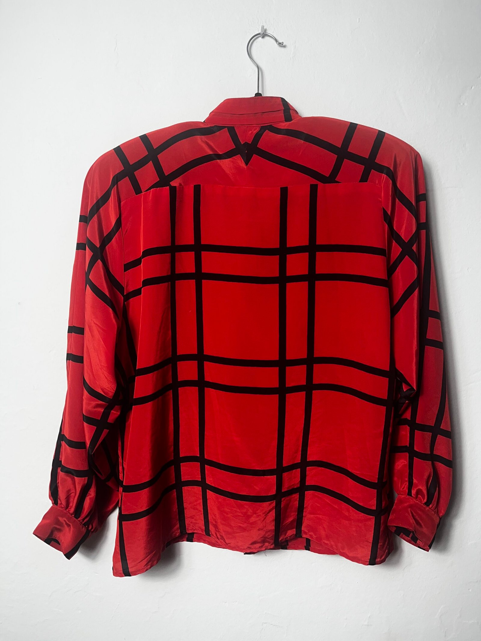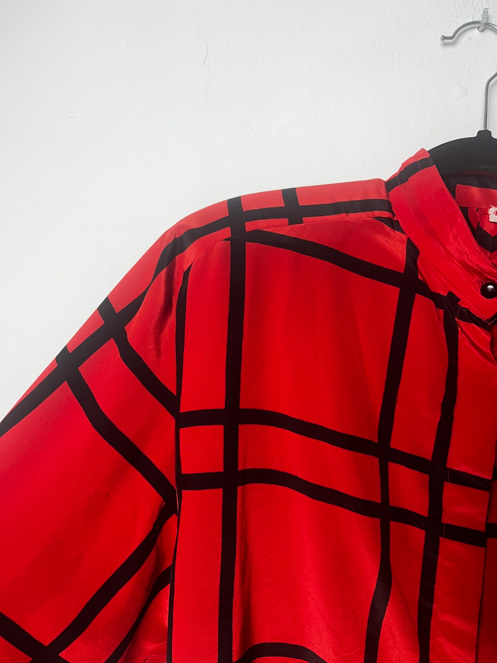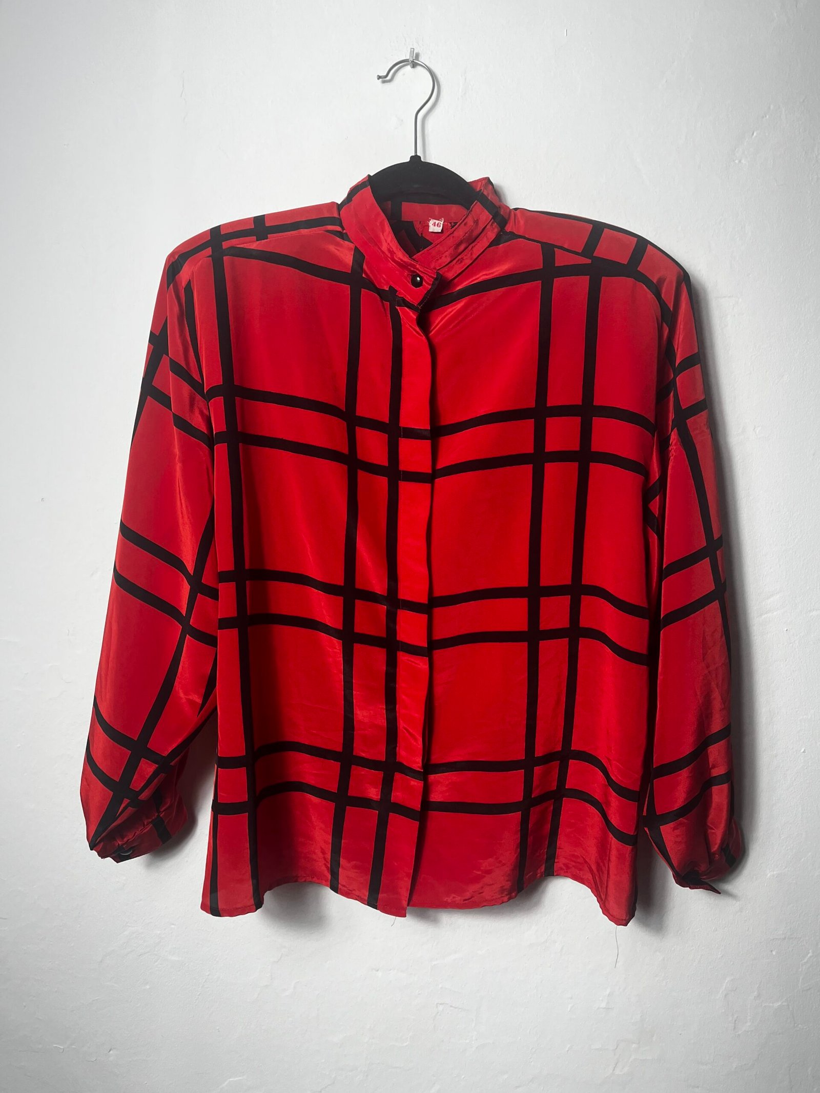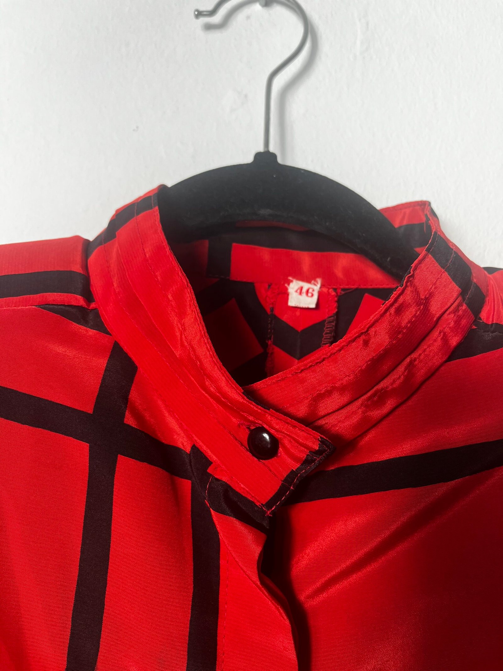Blusa vintage años 80´s, con grandes hombreras, cuello mao con drapeado, oversize.