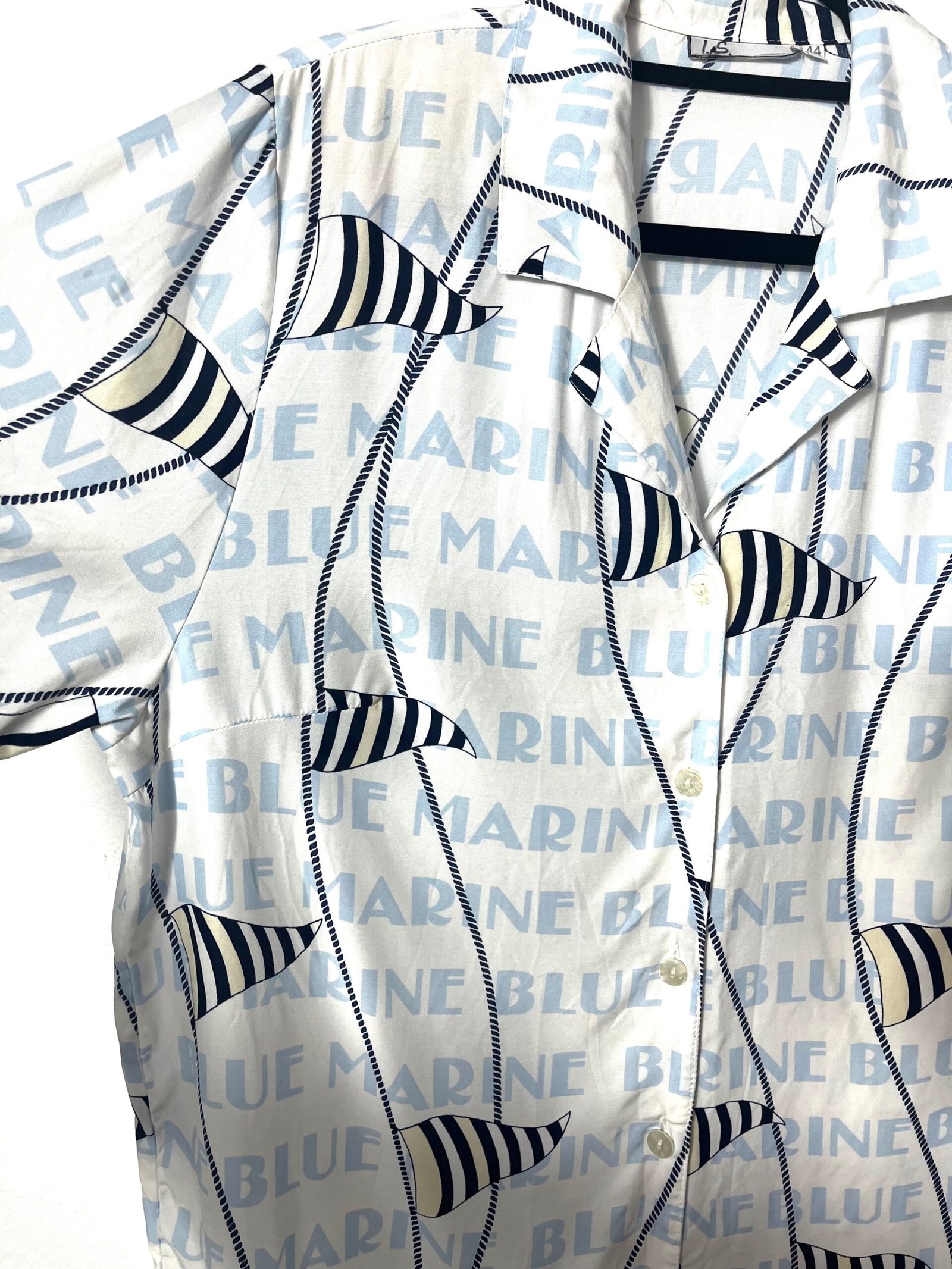 Camisa vintage con estampado de banderines marineros y lettering.
