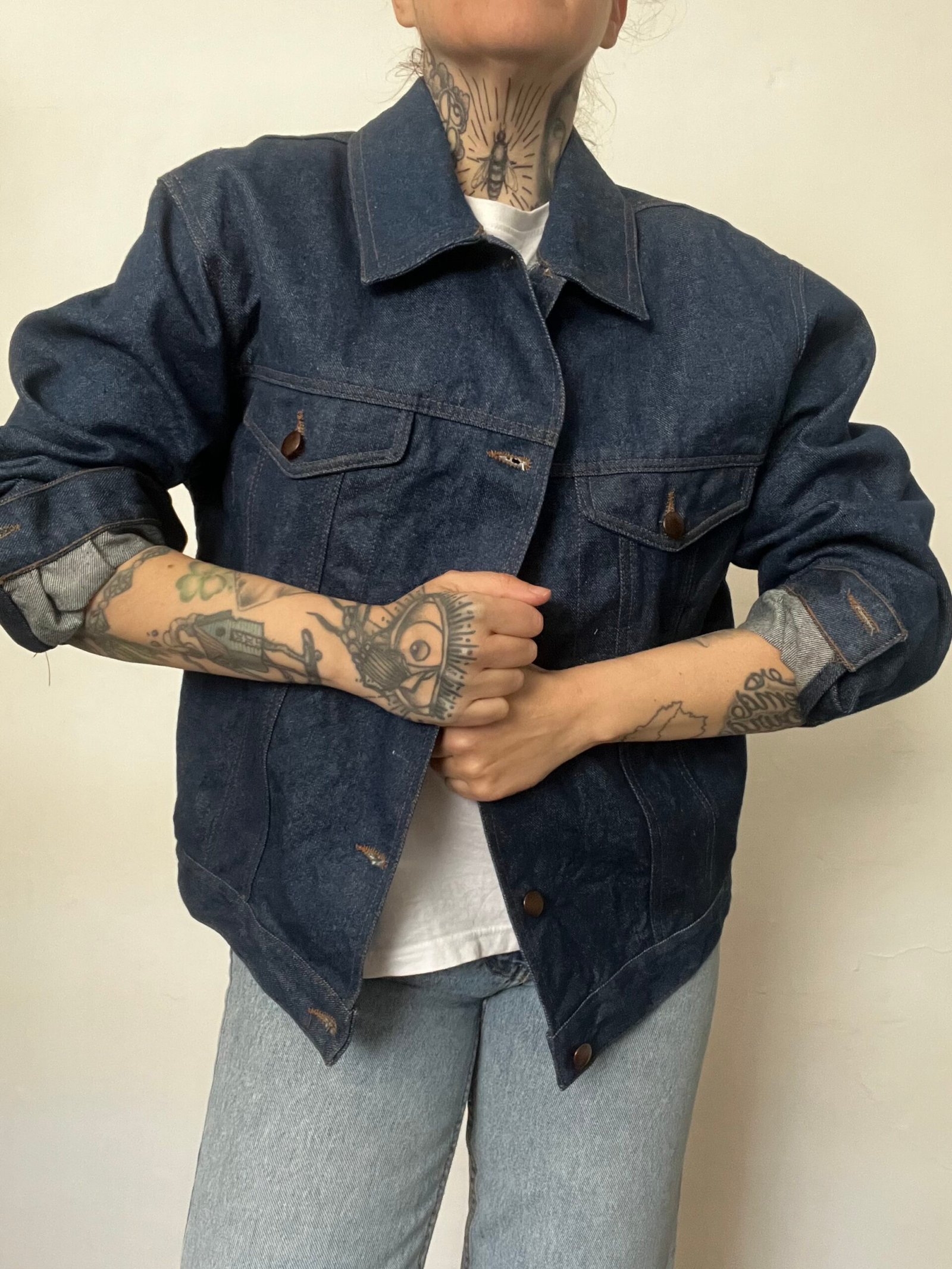 Cazadora vaquera vintage, años 90´s, de tejido vaquero clásico, gordo y granulado. Del Corte Inglés.