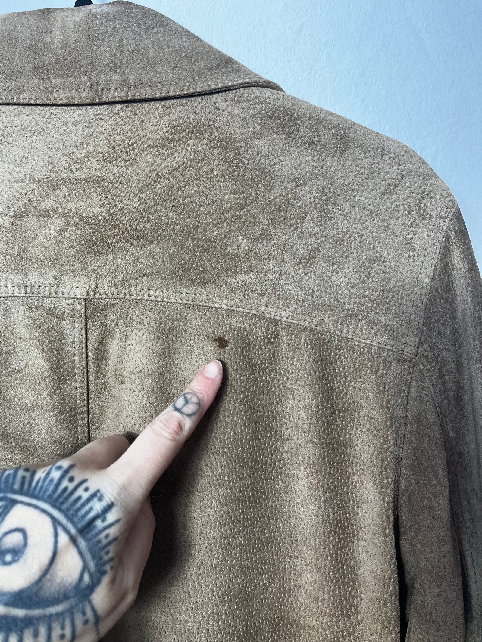 Chaqueta vintage de ante, años 70´s, en color arena con botones cuadrados de madera.