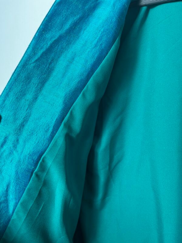 Chaqueta de seda 100%, hecha en Tailandia, en color verde tornasolado, con todo repleto de bordados florales.