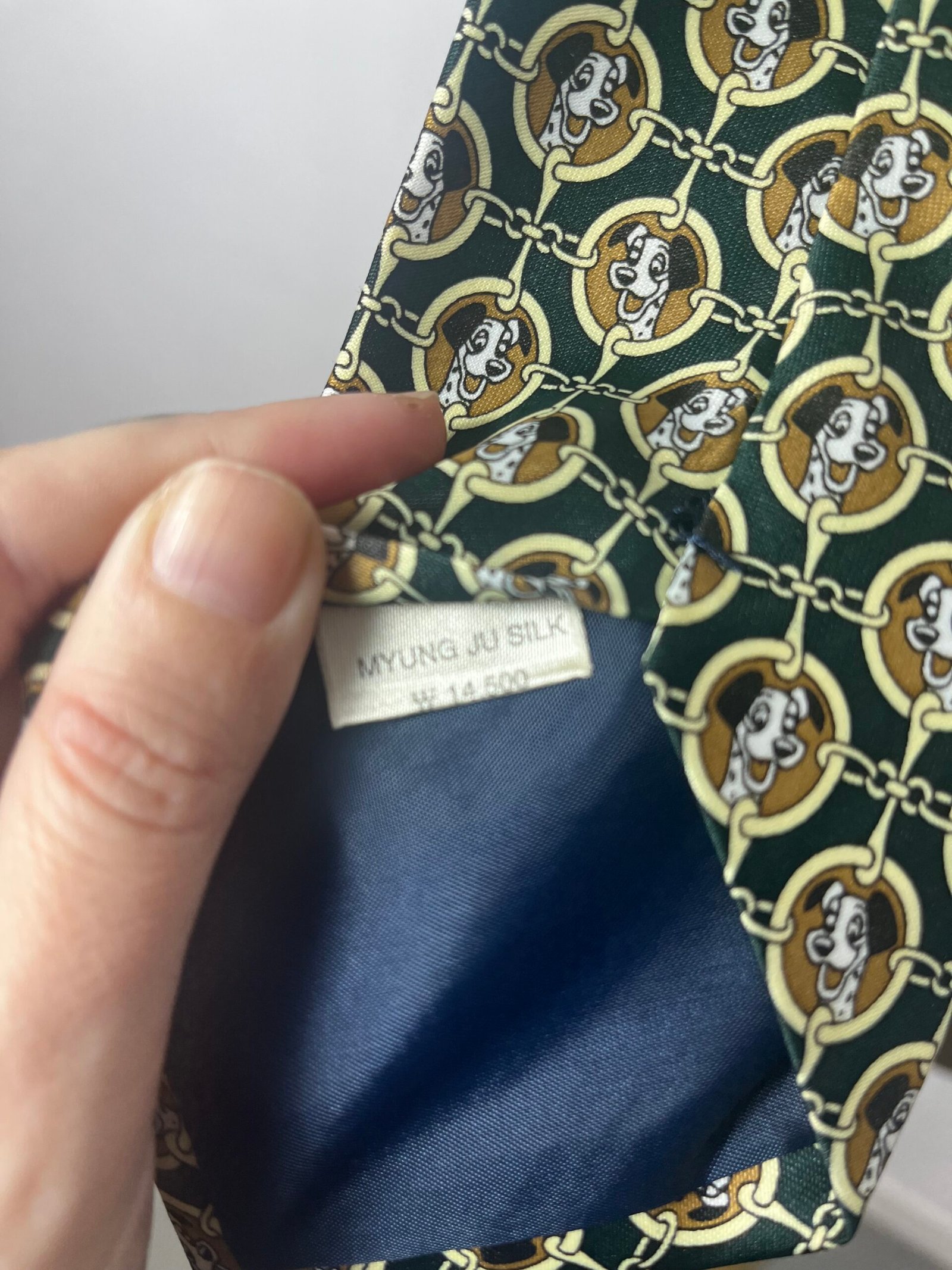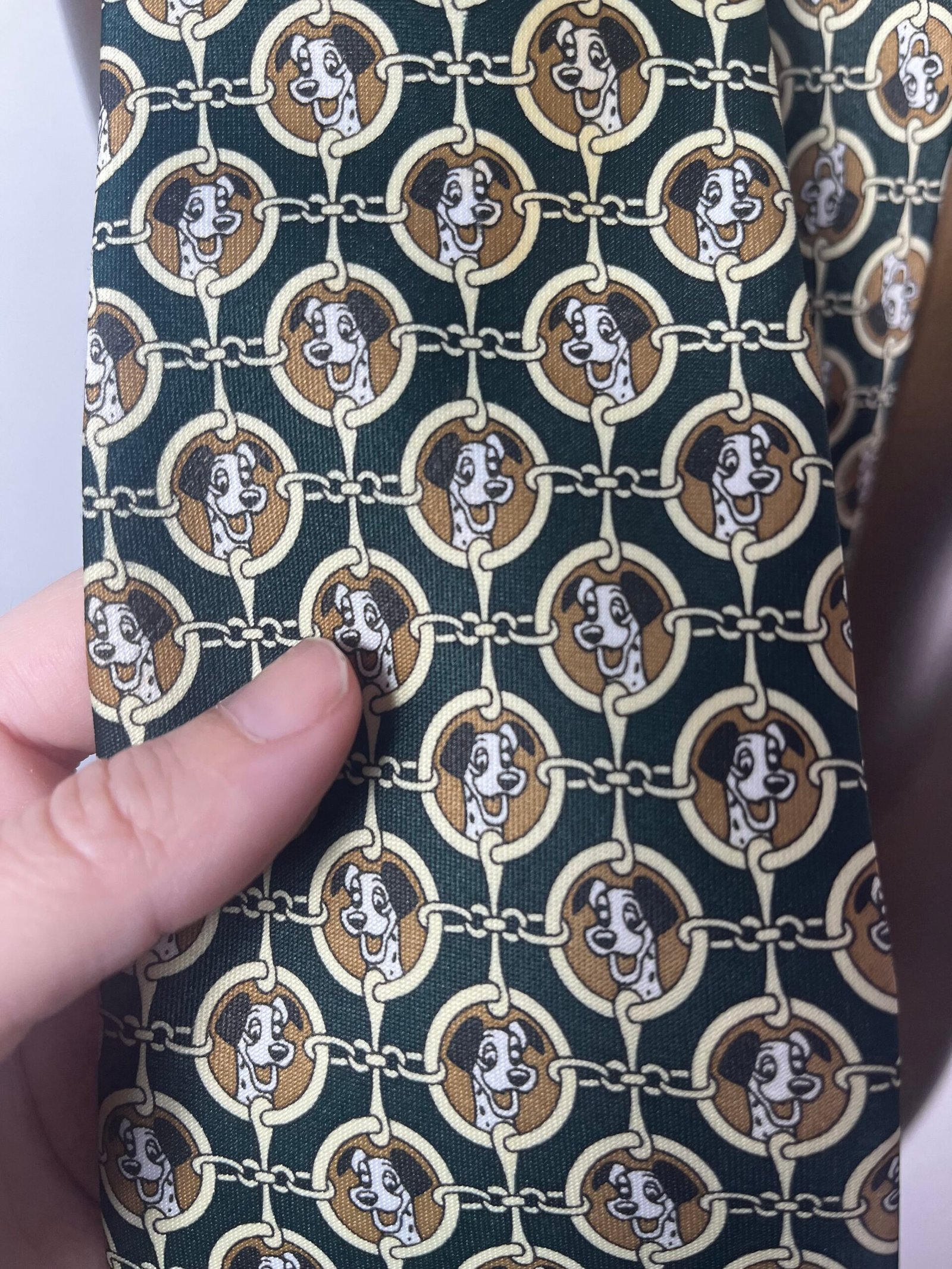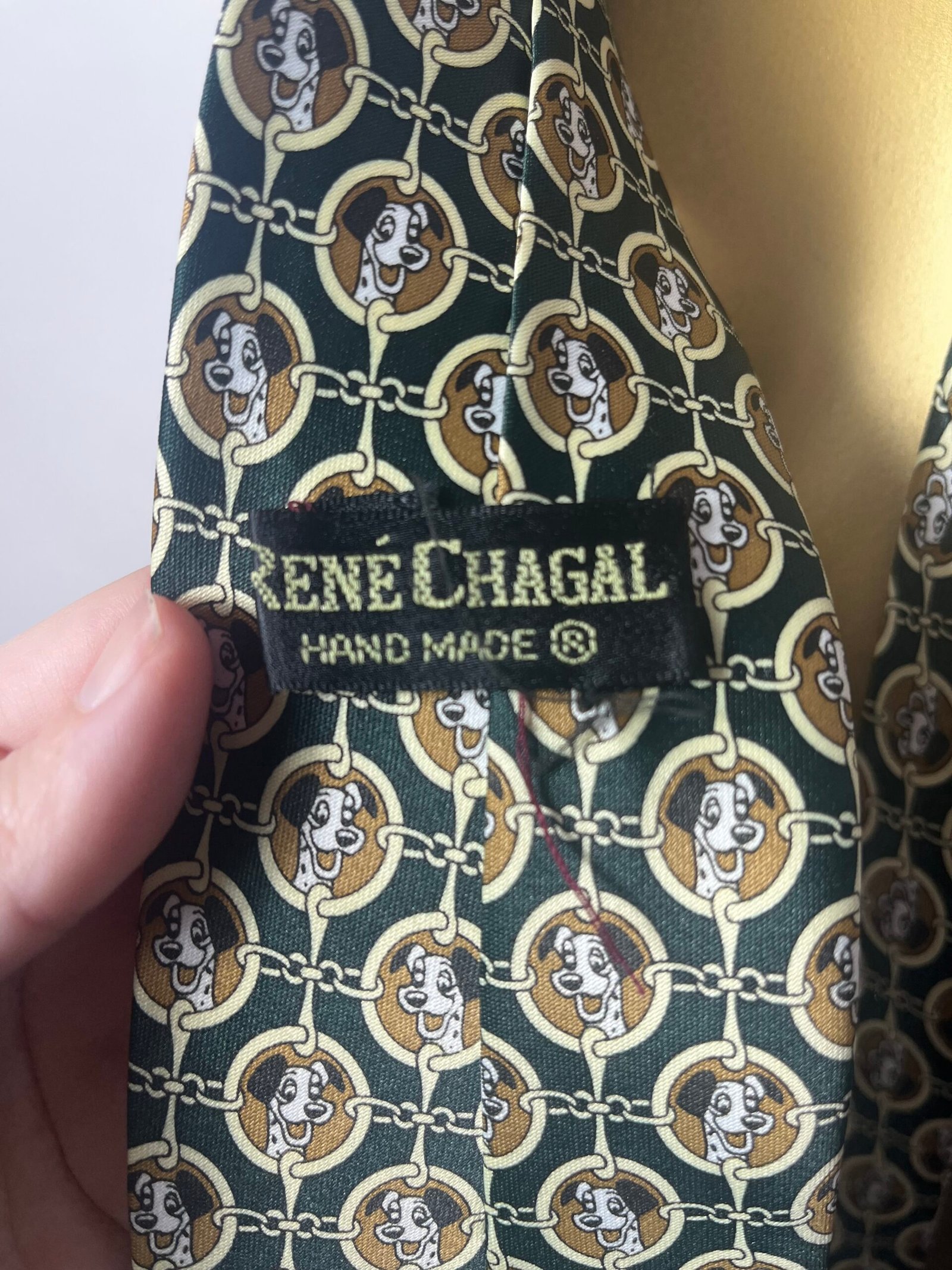 Corbata vintage René Chagal, de seda hecha a mano, con estampado con el perro de 101 Dálmatas,
