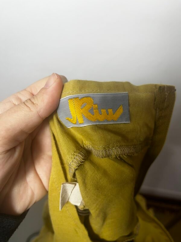 Falda años 80/90´s, tejido de hilo tipo lino fino y suave, en color entre oliva y mostaza, con tras capas de volantes y cuerpo marcado, con cintura muy alta.