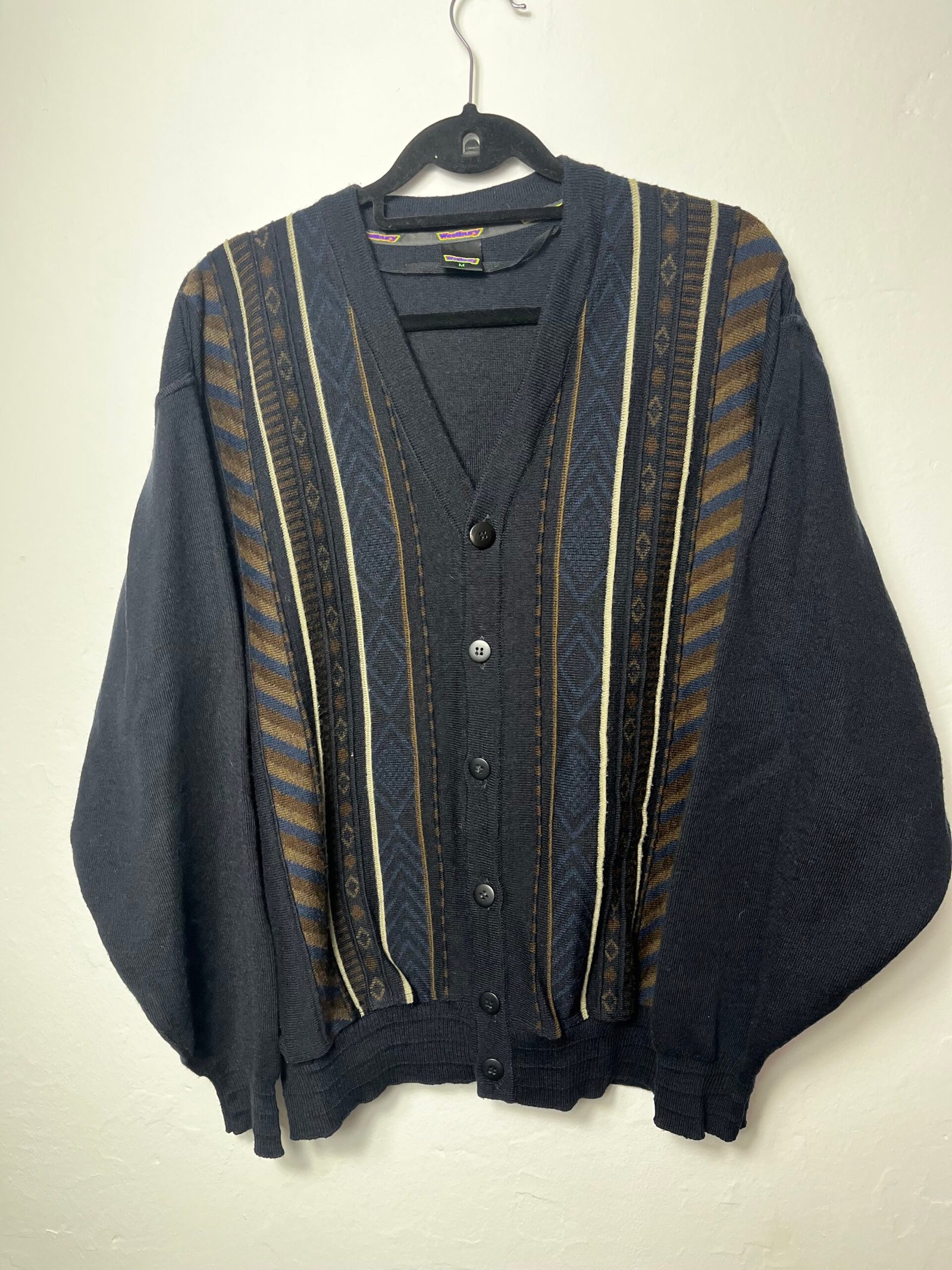 Rebeca masculina, en azul marino con cenefas delanteras.