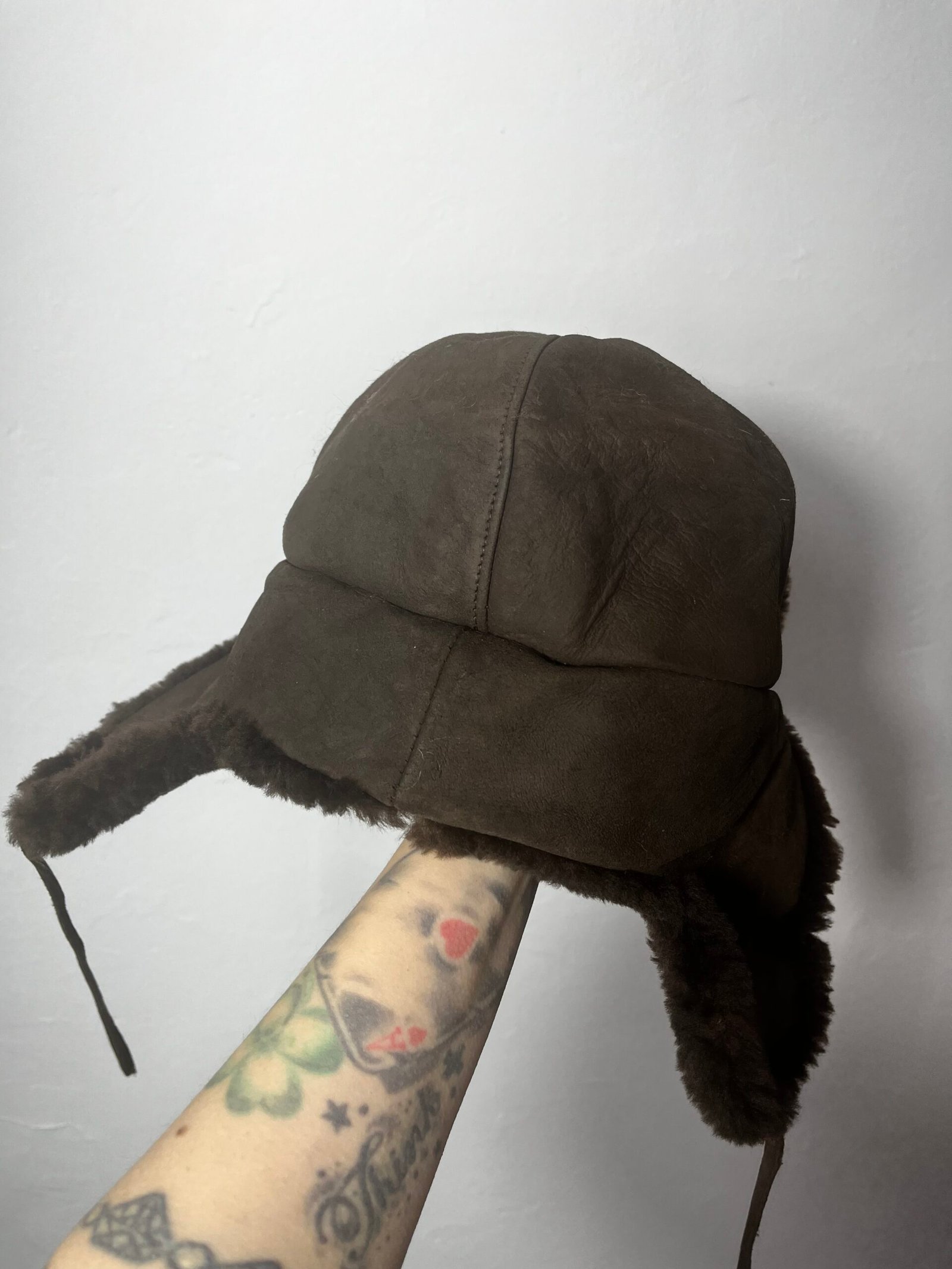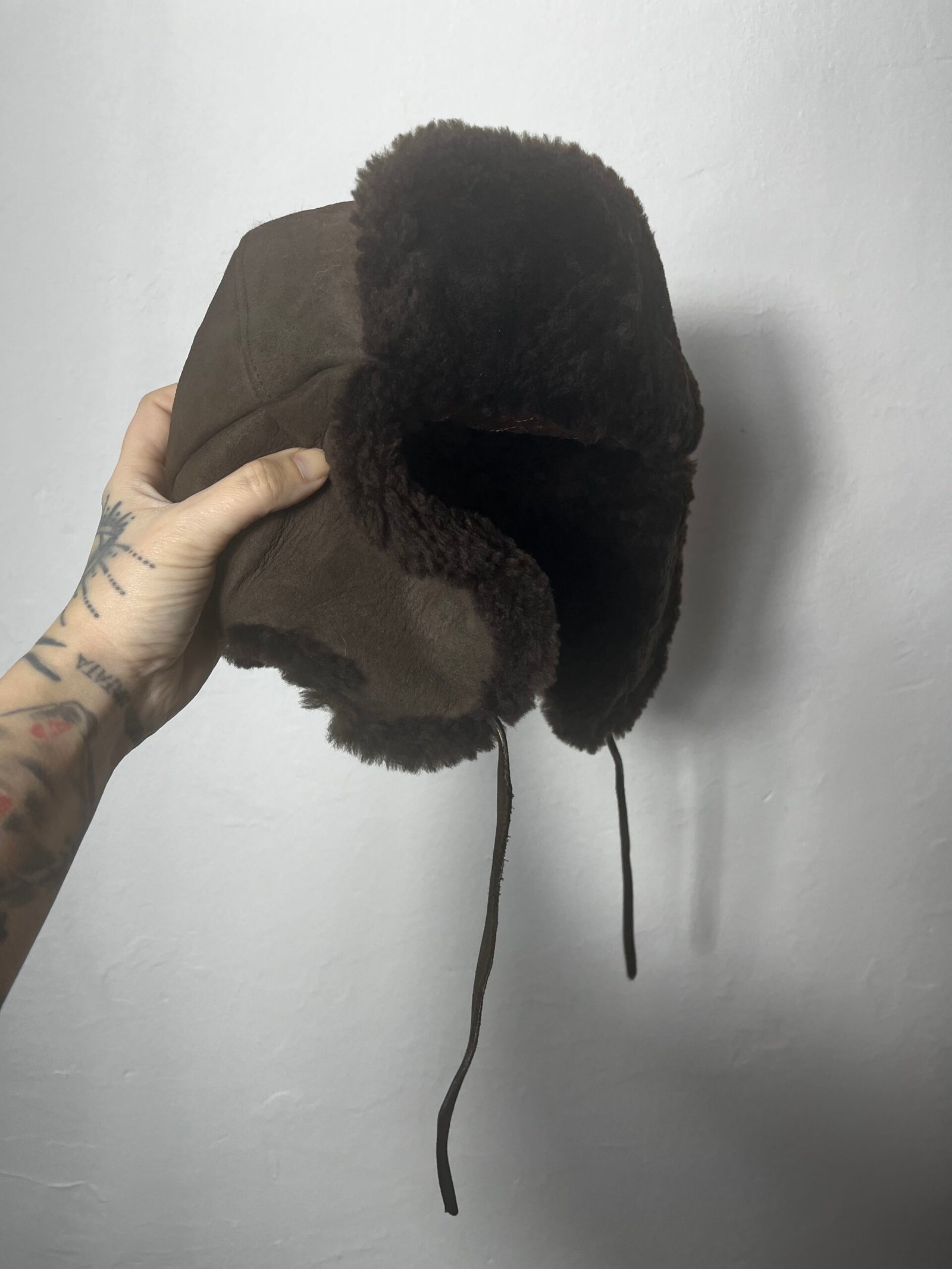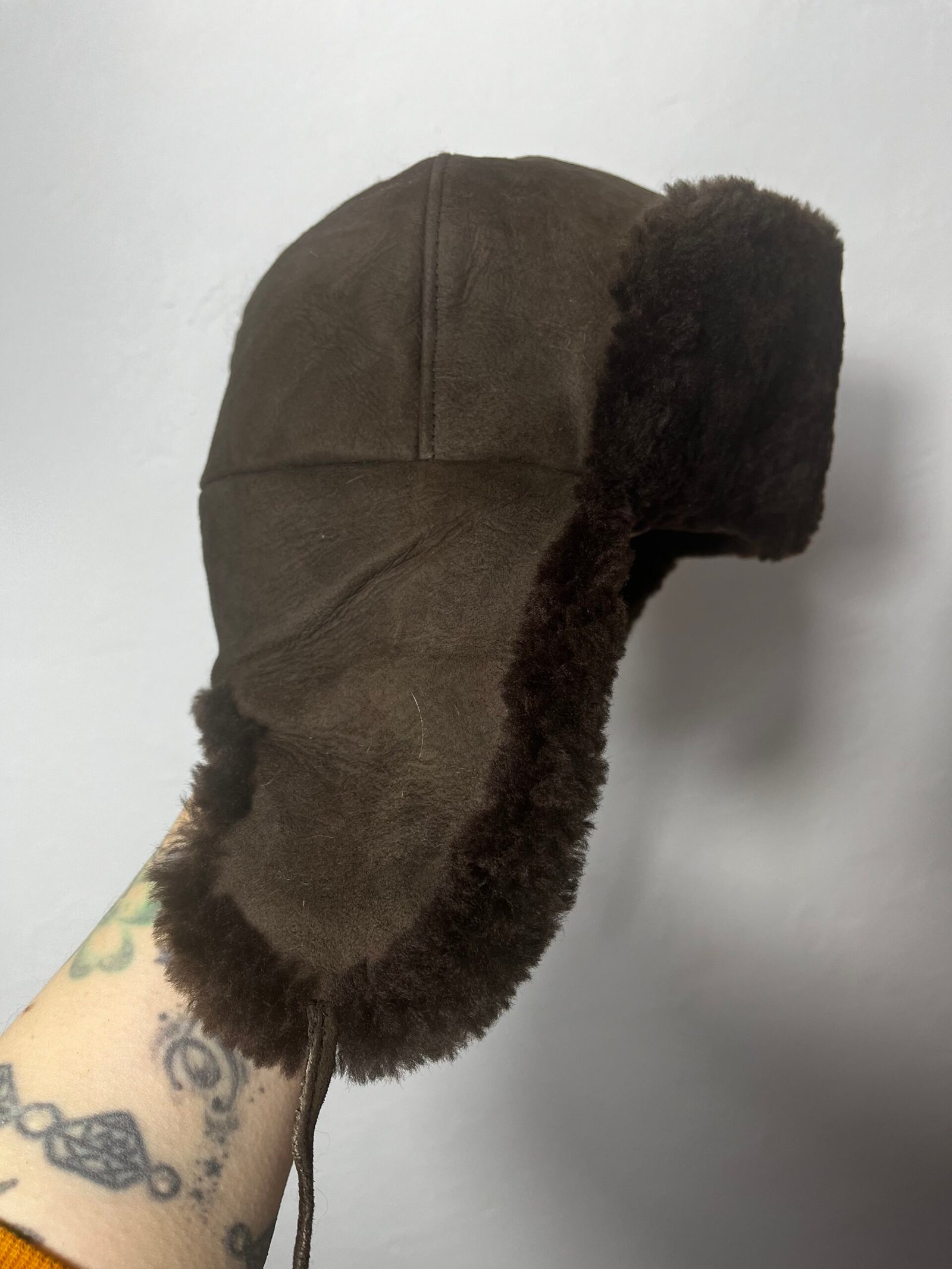 Gorro Ushanka, con exterior en piel marrón e interior de peluche en marrón chocolate oscuro. Es de Alemania, vintage, ultra calentito.