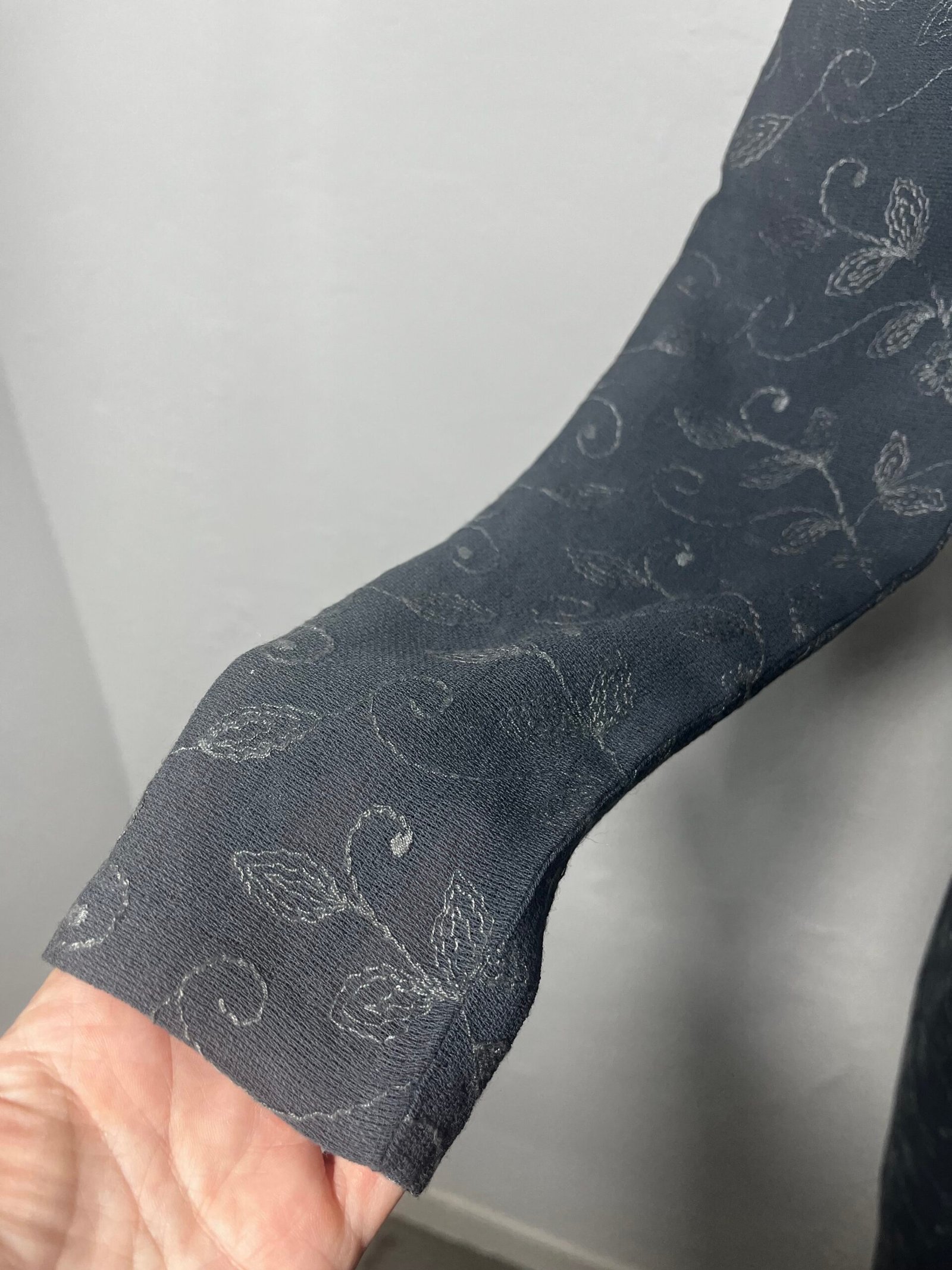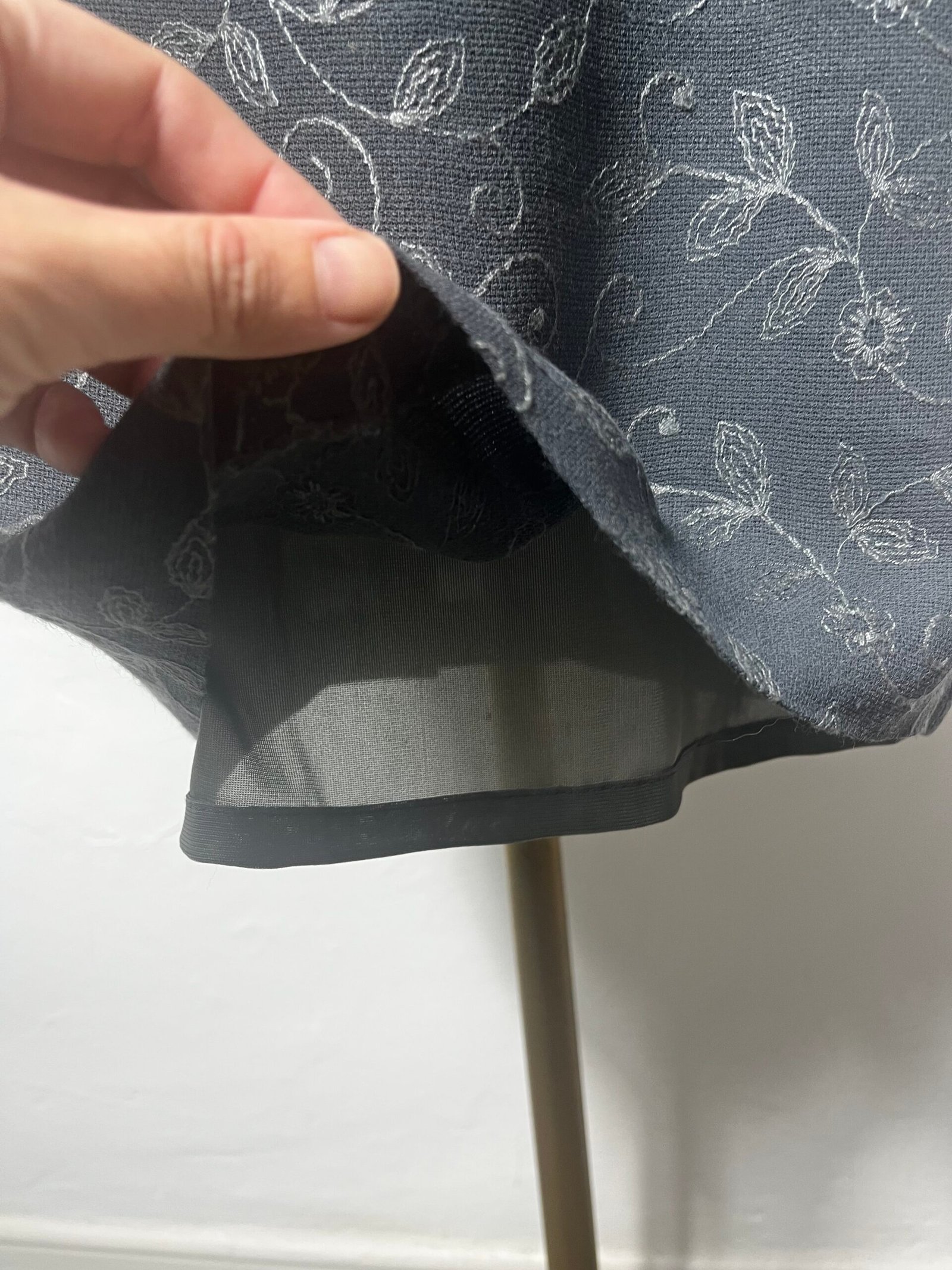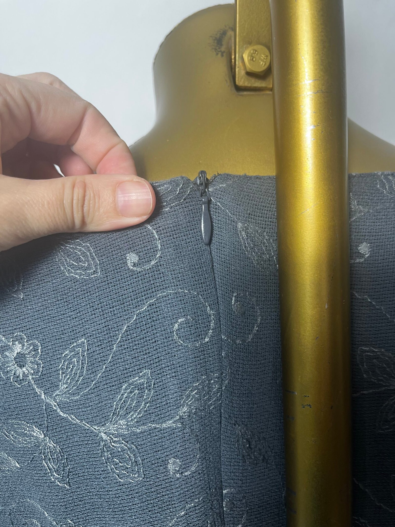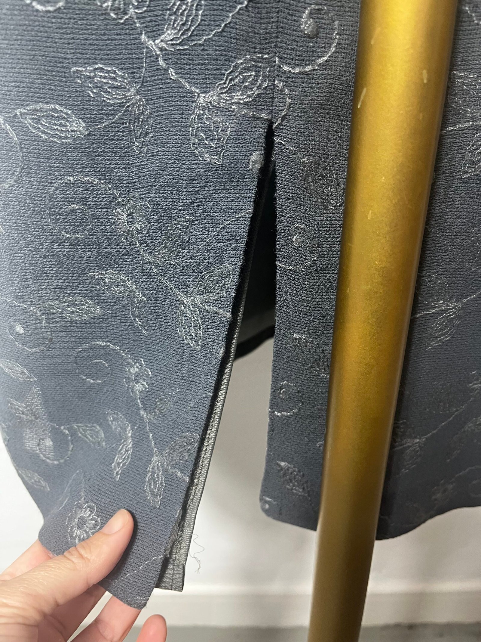 Vestido de manga larga, años 90´s, en gris con tejido con bordados. Lleva forro en todo el cuerpo (no en las mangas)
